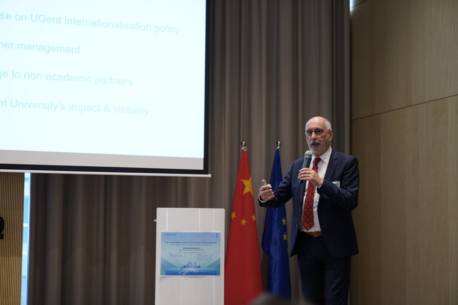 根特大学东亚平台主任、比利时皇家弗拉芒技术科学院院士Luc Taerwe教授介绍了该校与中国合作逾40年的深厚基础,强调东亚平台自2006年成立以来在中比学术合作中的战略枢纽作用。目前,根特大学已与中国百余所大学建立合作关系,共建十余家联合实验室,涵盖工程、生物科学与全球健康等领域,形成互访频繁、成果丰硕的双向交流格局。两位嘉宾均表示,当前正是中欧深化互信、共促创新的良机,期待未来在科研、教育与产业转化方面实现更广泛、更深入的合作。