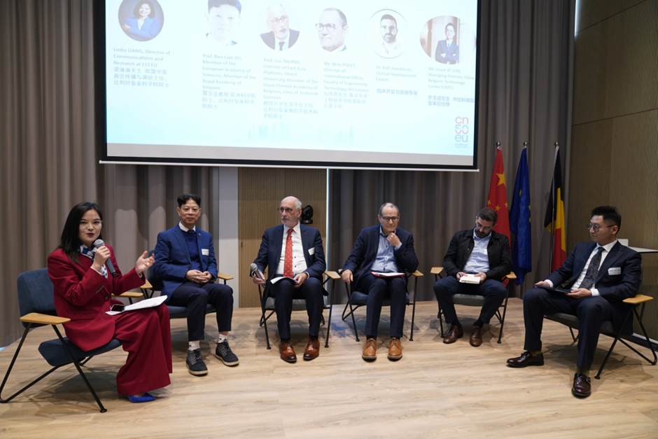 围绕“Innovation & Future: Bridging Academia, Research and Industry”主题,圆桌论坛由欧盟中国商会(CCCEU)传播与调研主任梁淋淋女士主持,汇聚了来自科研、高校与产业界的重量级嘉宾,包括:欧洲科学院院士苏宝连教授、根特大学Luc Taerwe教授、鲁汶大学工程技术学院国际办公室主任Wim Polet先生、药物开发专家Rafi Awedikian先生及中比科技园董事总经理罗玉成先生。
